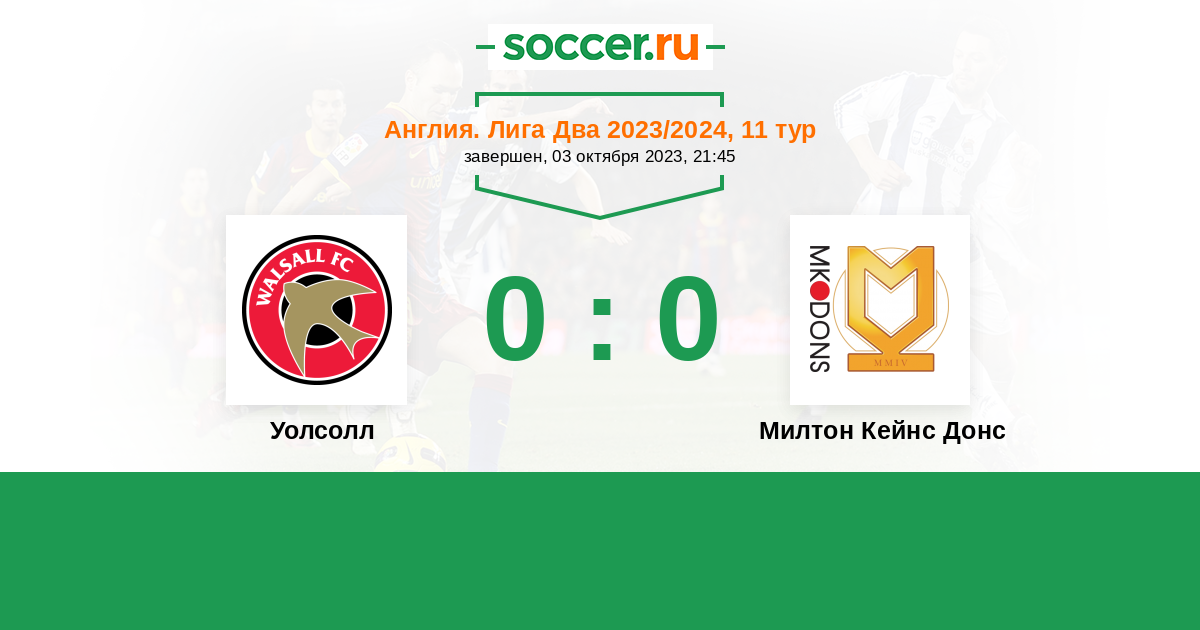 Протокол матча Уолсолл против Милтон Кейнс Донс