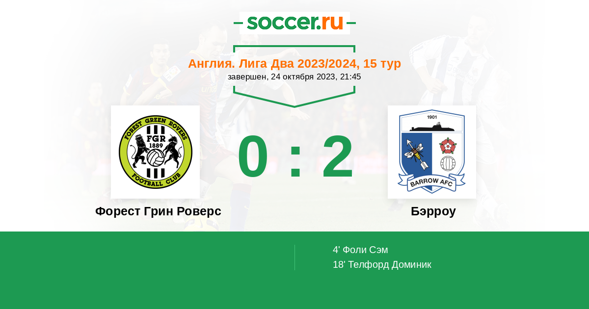Протокол матча Форест Грин Роверс против Бэрроу