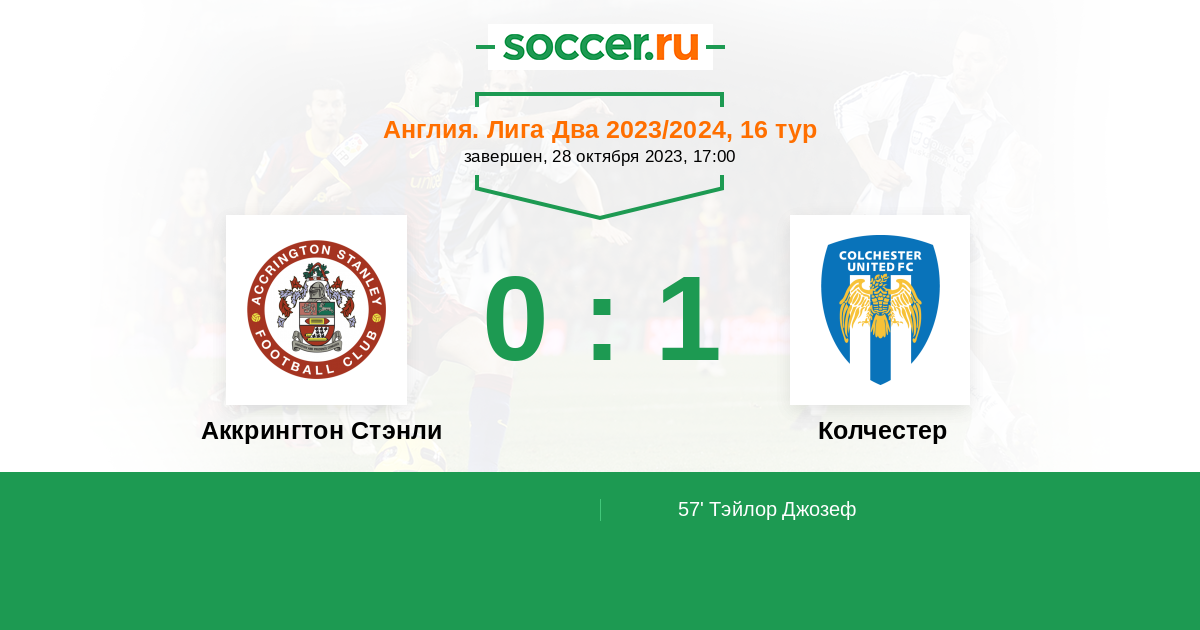Протокол матча Аккрингтон Стэнли против Колчестер