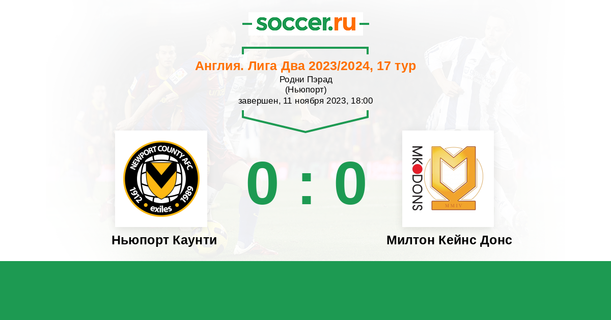 Протокол матча Ньюпорт Каунти против Милтон Кейнс Донс