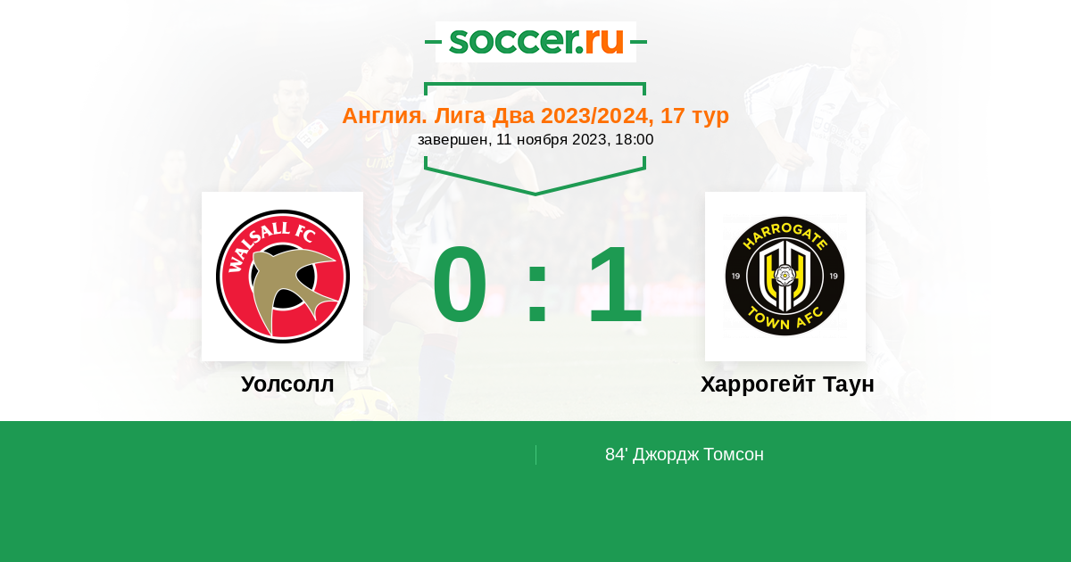 Протокол матча Уолсолл против Харрогейт Таун