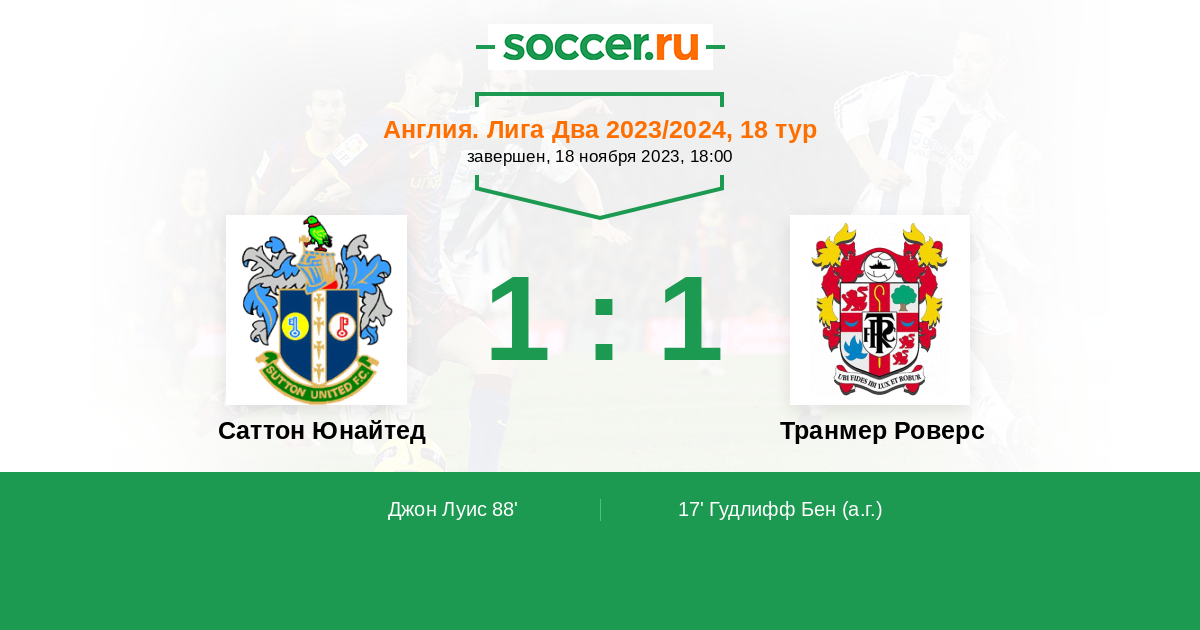 Протокол матча Саттон Юнайтед против Транмер Роверс
