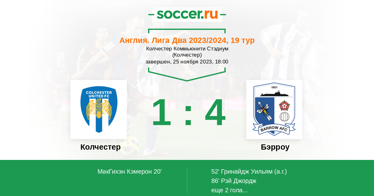 52' (1:1) Автогол Гринайдж Уильям (2)