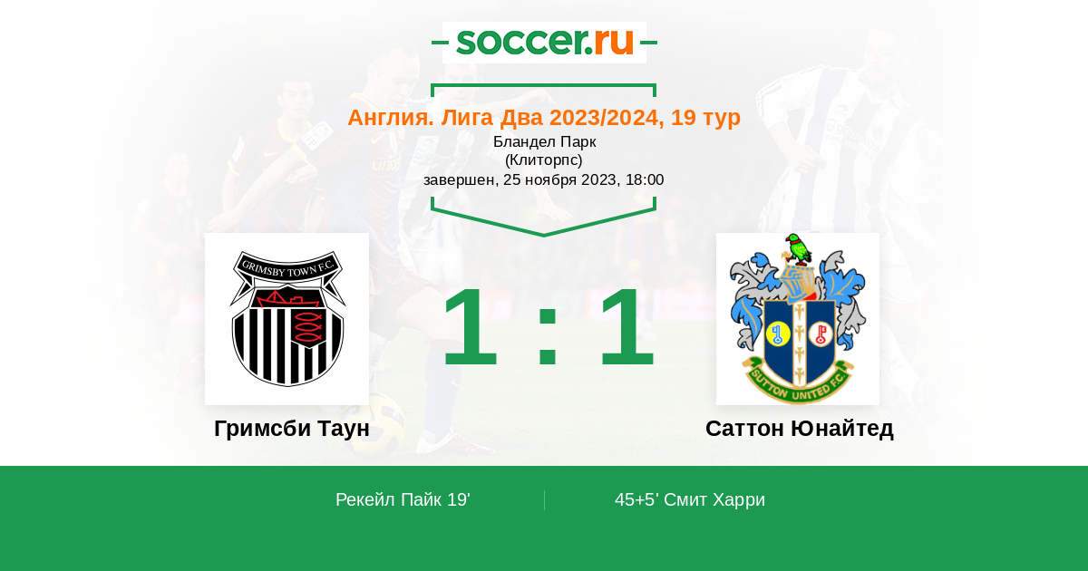 Протокол матча Гримсби Таун против Саттон Юнайтед