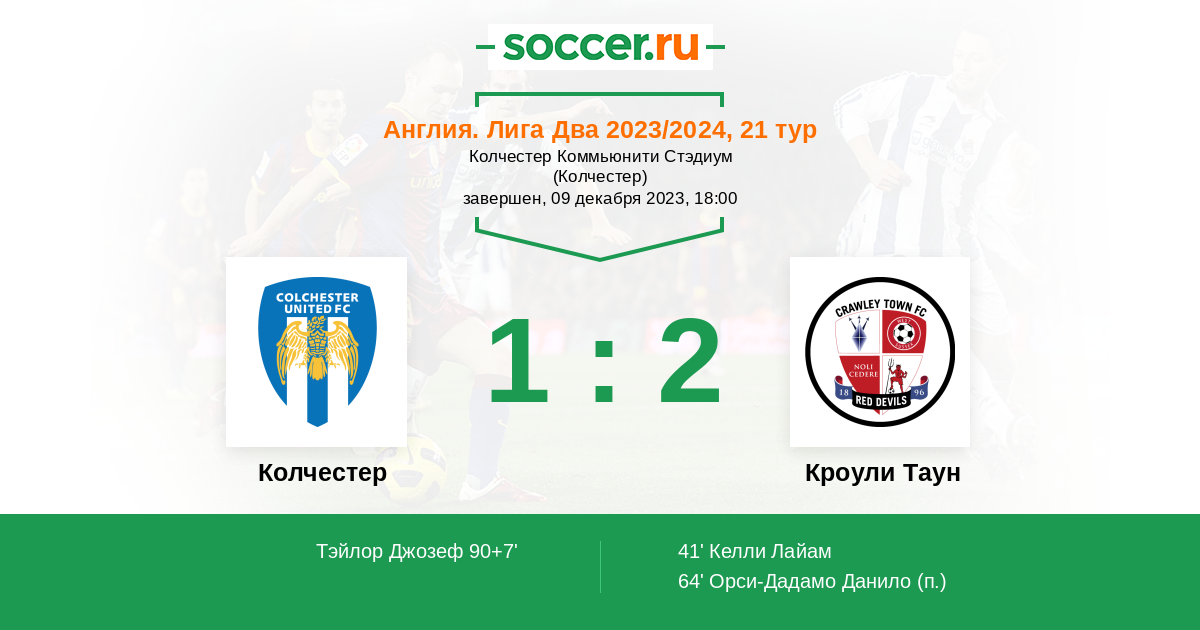 41' (0:1) Келли Лайам (4) (Райт Уилл (30))