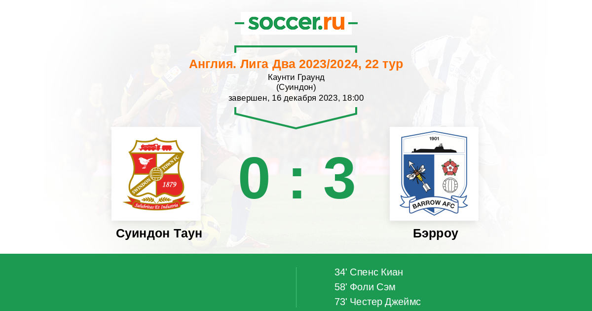 34' (0:1) Спенс Киан (8) (Уорролл Дэвид (7))