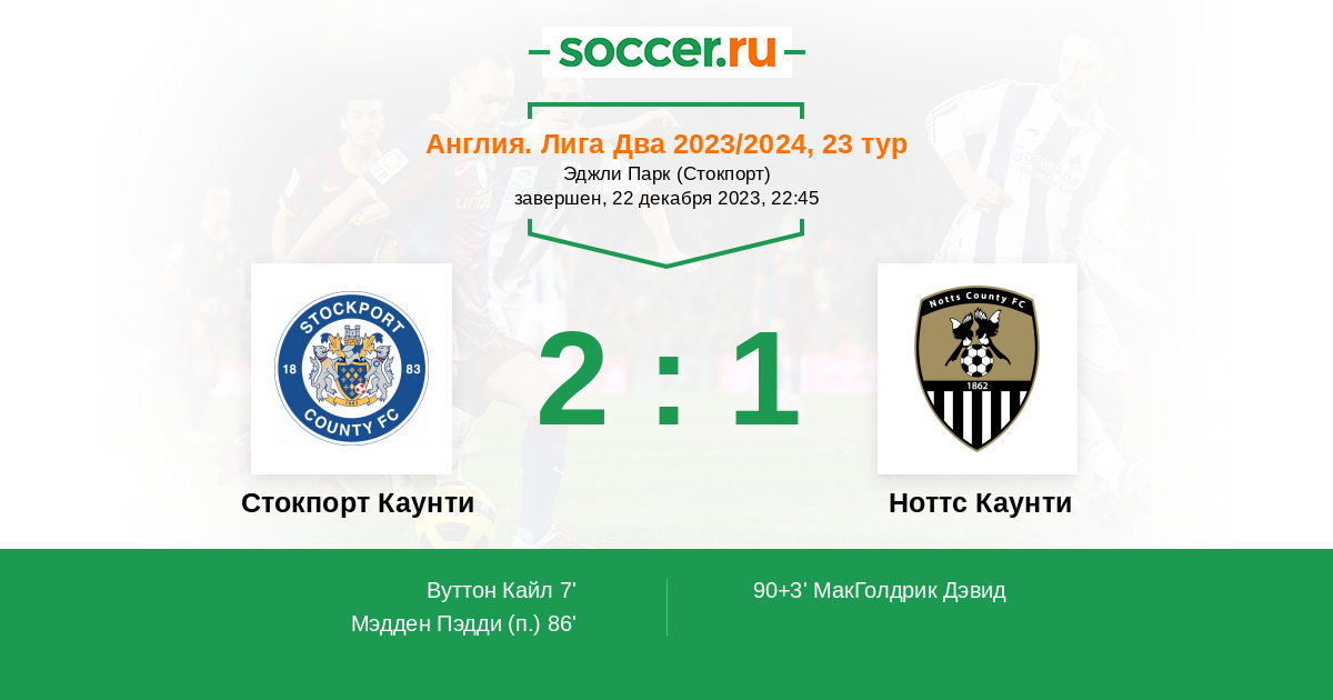 Протокол матча Стокпорт Каунти против Ноттс Каунти