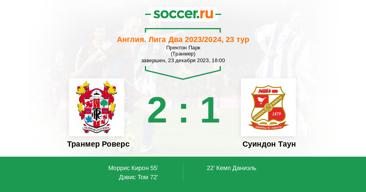 55' (1:1) Моррис Кирон (7) (Сондерс Харви (19))