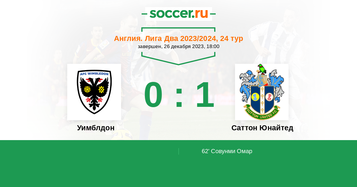 62' (0:1) Совунми Омар (4) (Смит Харри (9))