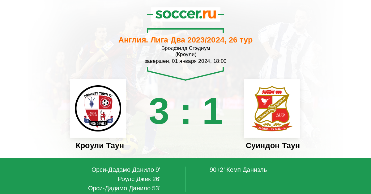 Протокол матча Кроули Таун против Суиндон Таун