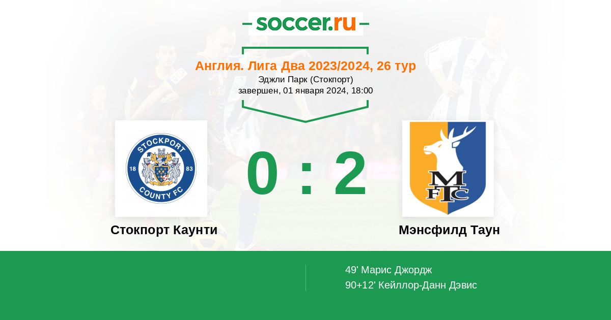 Протокол матча Стокпорт Каунти против Мэнсфилд Таун