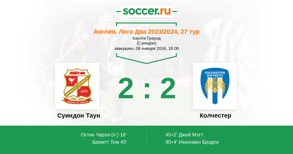 Протокол матча Суиндон Таун против Колчестер