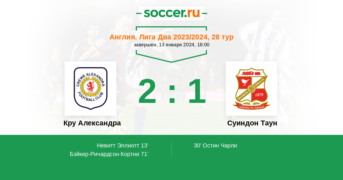 Протокол матча Кру Александра против Суиндон Таун