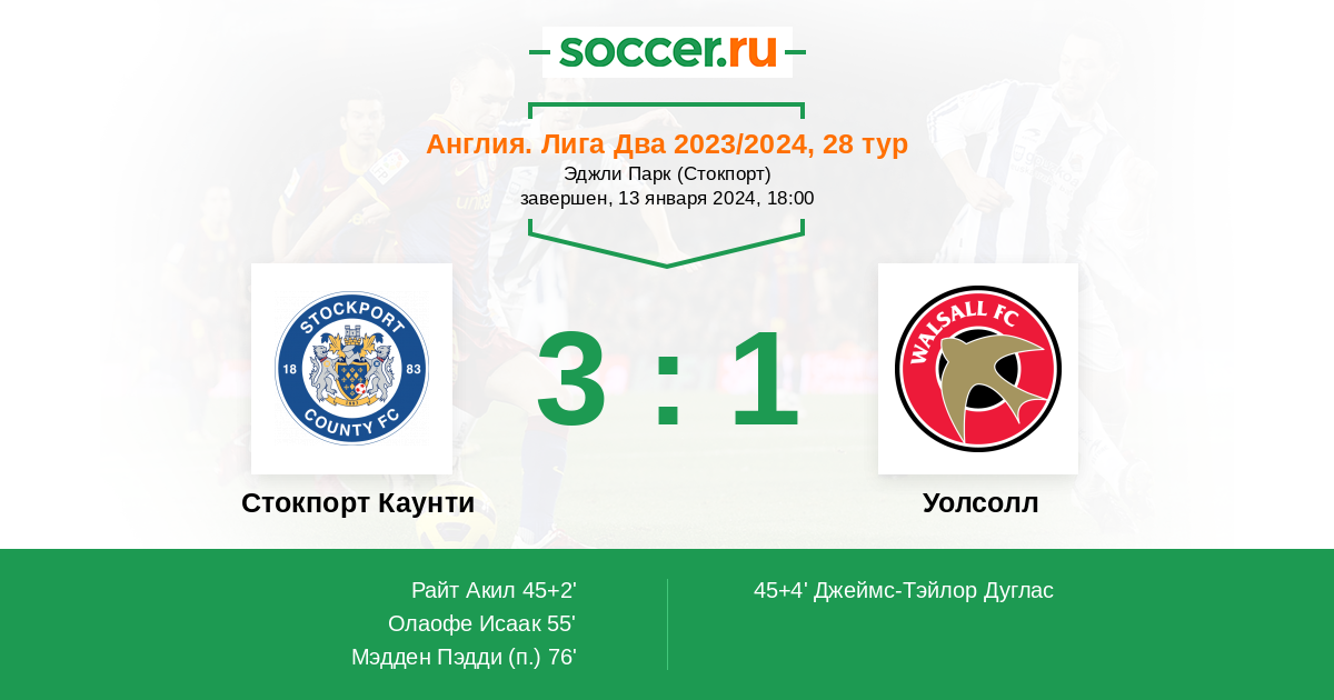 45+2' (1:0) Райт Акил (4) (Байли Один (27))