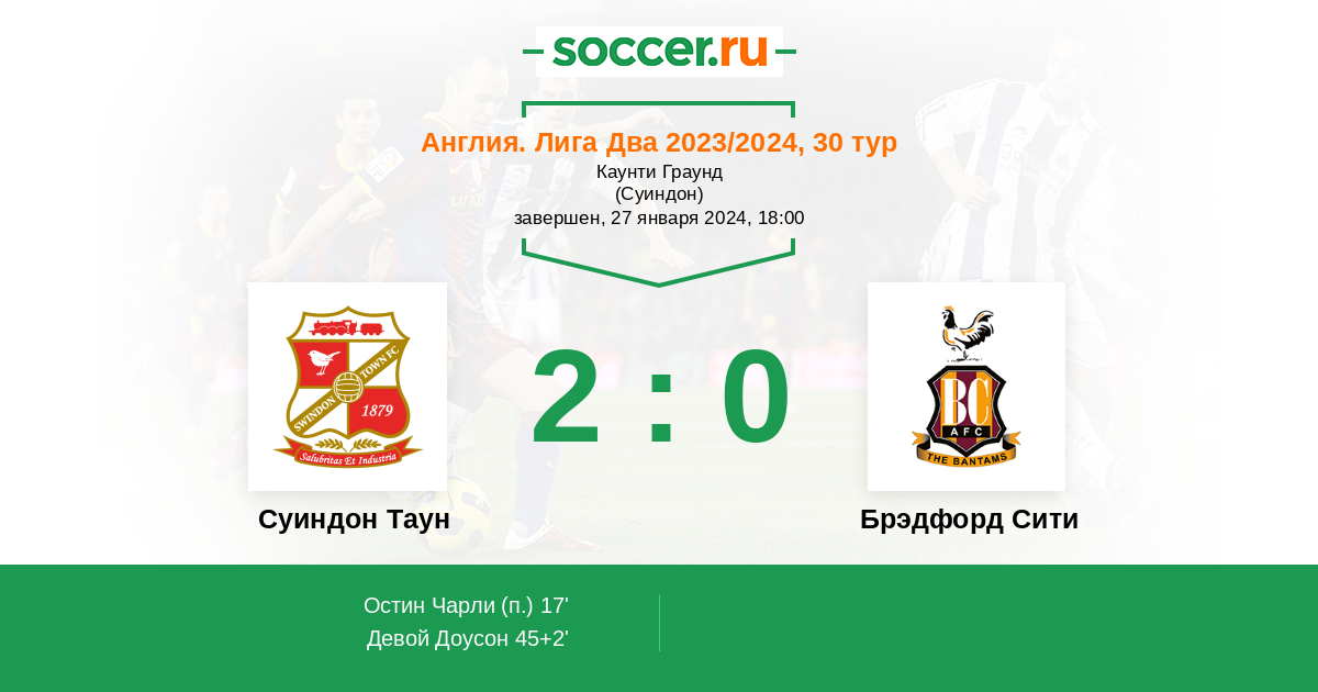 Протокол матча Суиндон Таун против Брэдфорд Сити