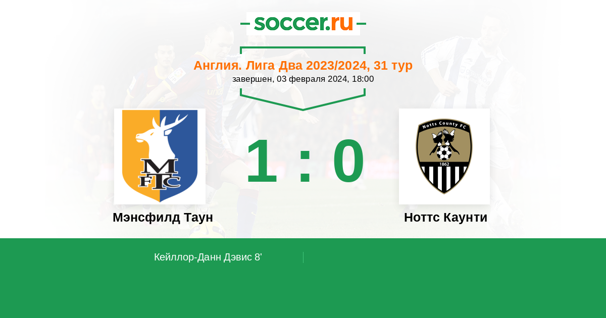 Протокол матча Мэнсфилд Таун против Ноттс Каунти