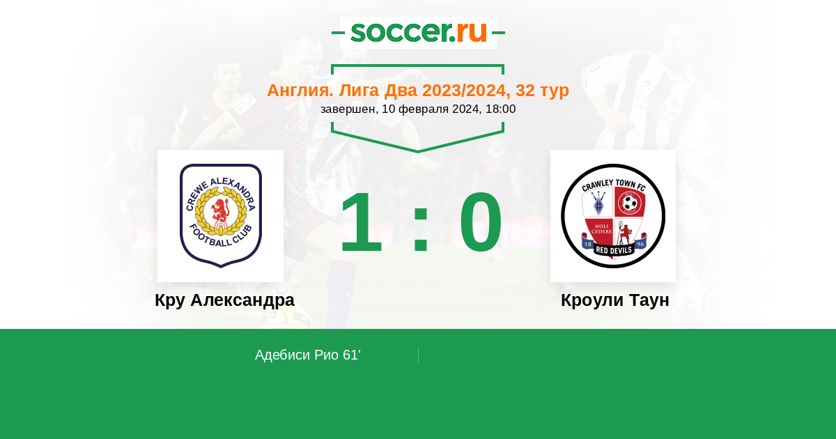 61' (1:0) Адебиси Рио (3) (Биллингтон Льюис (28))