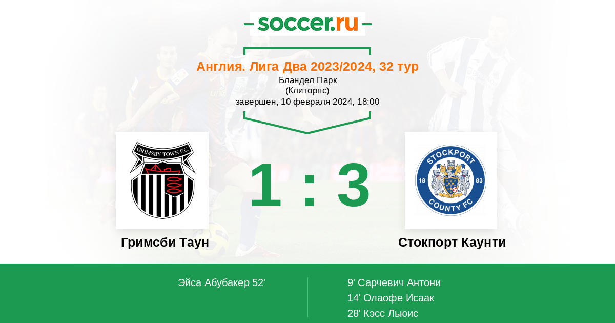 Протокол матча Гримсби Таун против Стокпорт Каунти