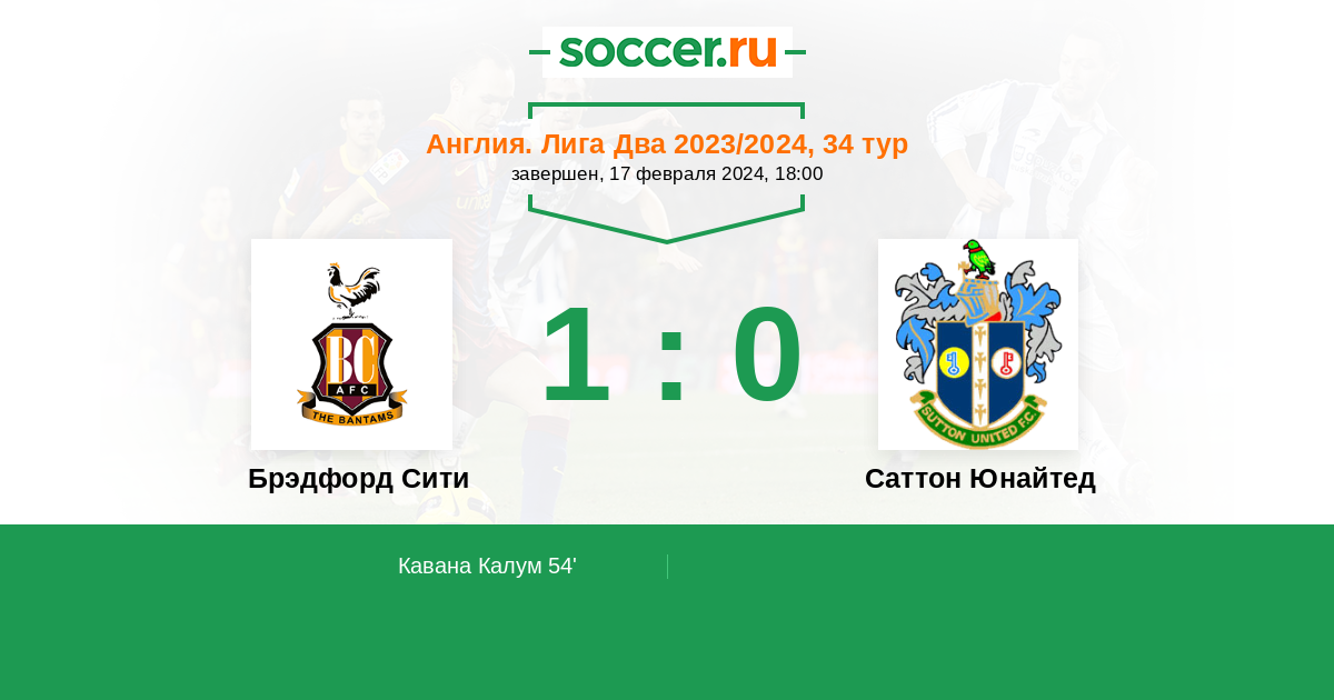 Протокол матча Брэдфорд Сити против Саттон Юнайтед