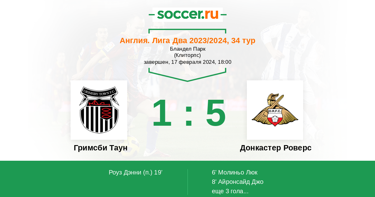 Протокол матча Гримсби Таун против Донкастер Роверс