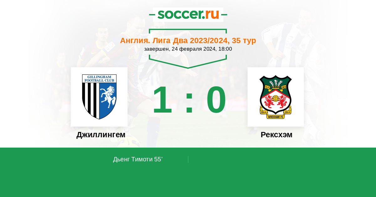 55' (1:0) Дьенг Тимоти (38)