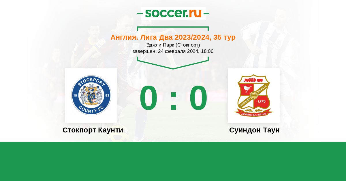 Протокол матча Стокпорт Каунти против Суиндон Таун