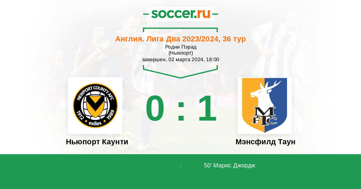 Протокол матча Ньюпорт Каунти против Мэнсфилд Таун