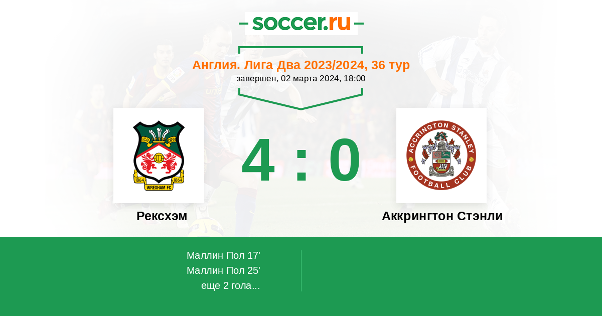 Протокол матча Рексхэм против Аккрингтон Стэнли