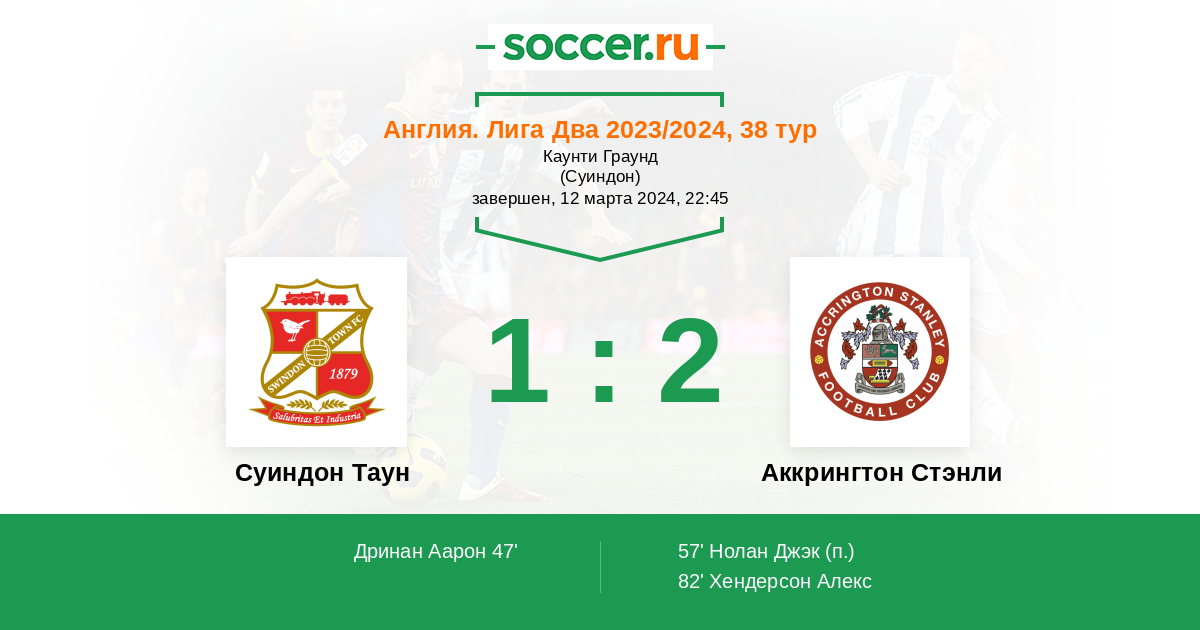 Протокол матча Суиндон Таун против Аккрингтон Стэнли