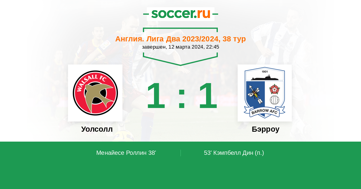 Протокол матча Уолсолл против Бэрроу