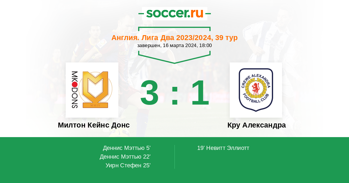 Протокол матча Милтон Кейнс Донс против Кру Александра