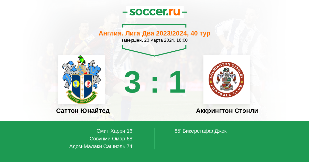 Протокол матча Саттон Юнайтед против Аккрингтон Стэнли