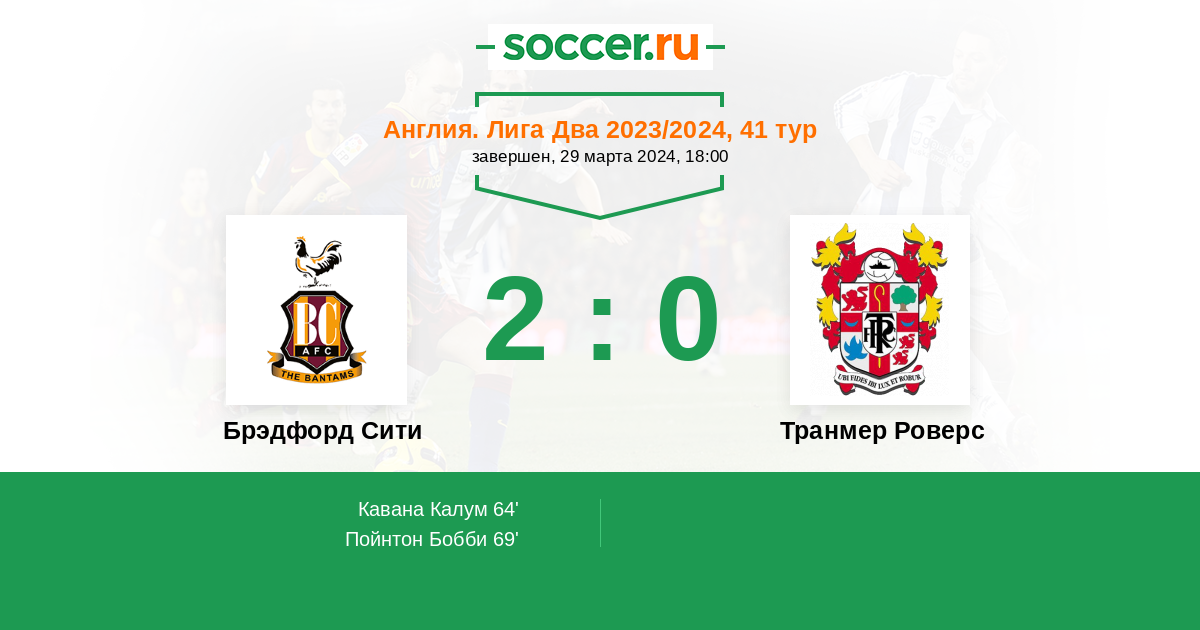 Протокол матча Брэдфорд Сити против Транмер Роверс