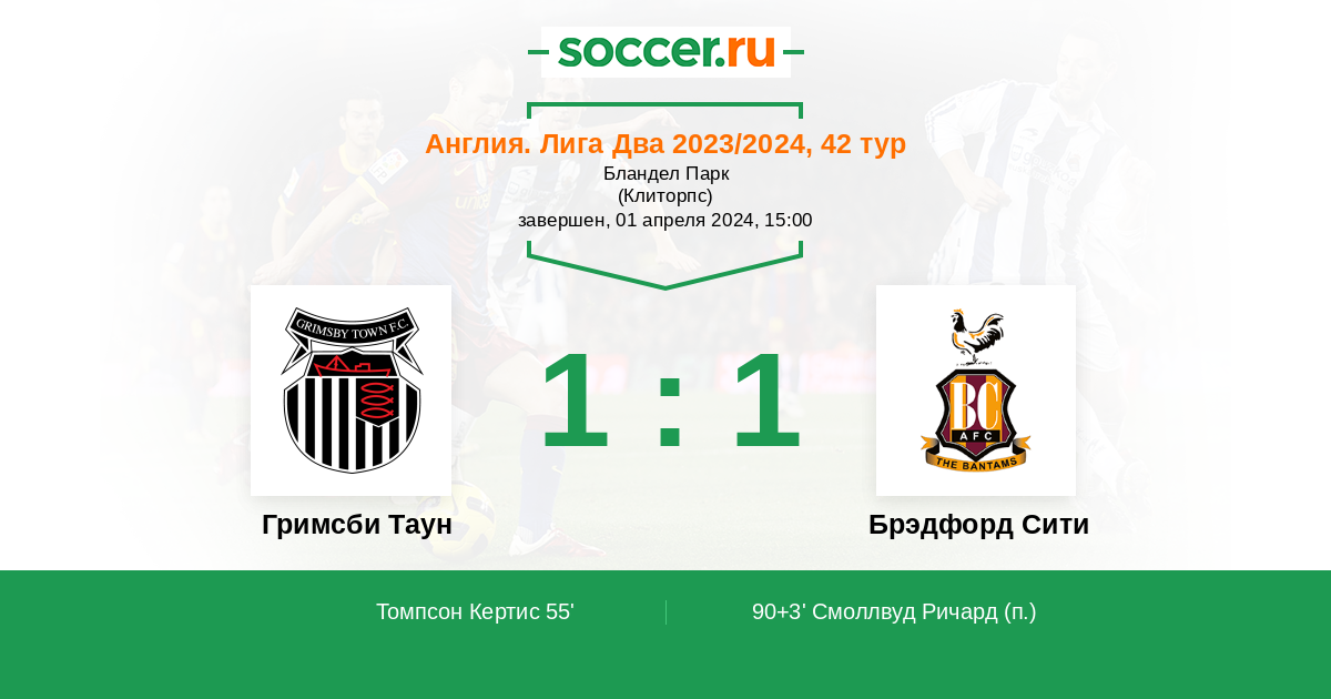 Протокол матча Гримсби Таун против Брэдфорд Сити