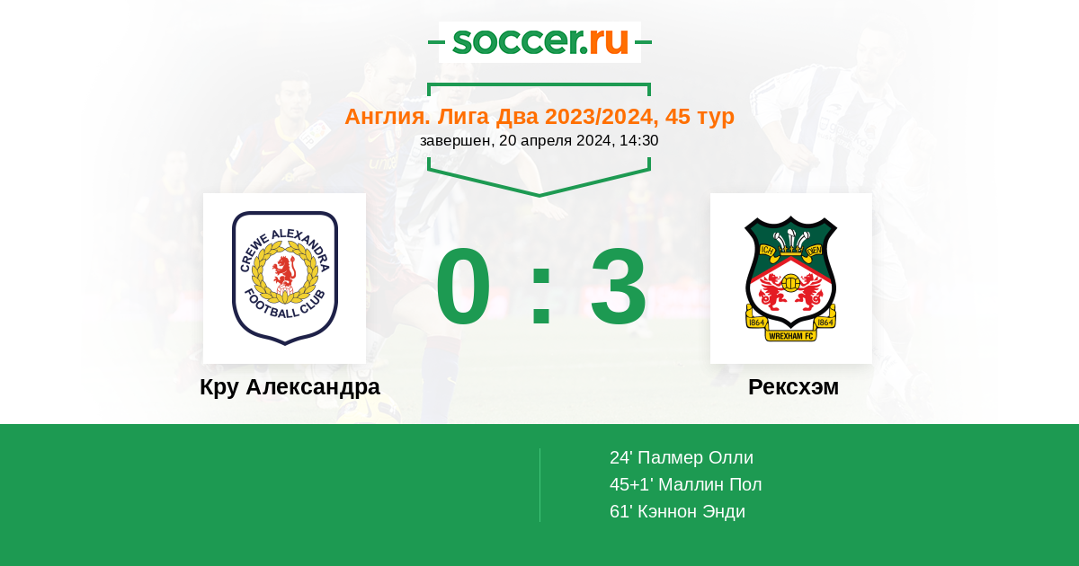 Протокол матча Кру Александра против Рексхэм