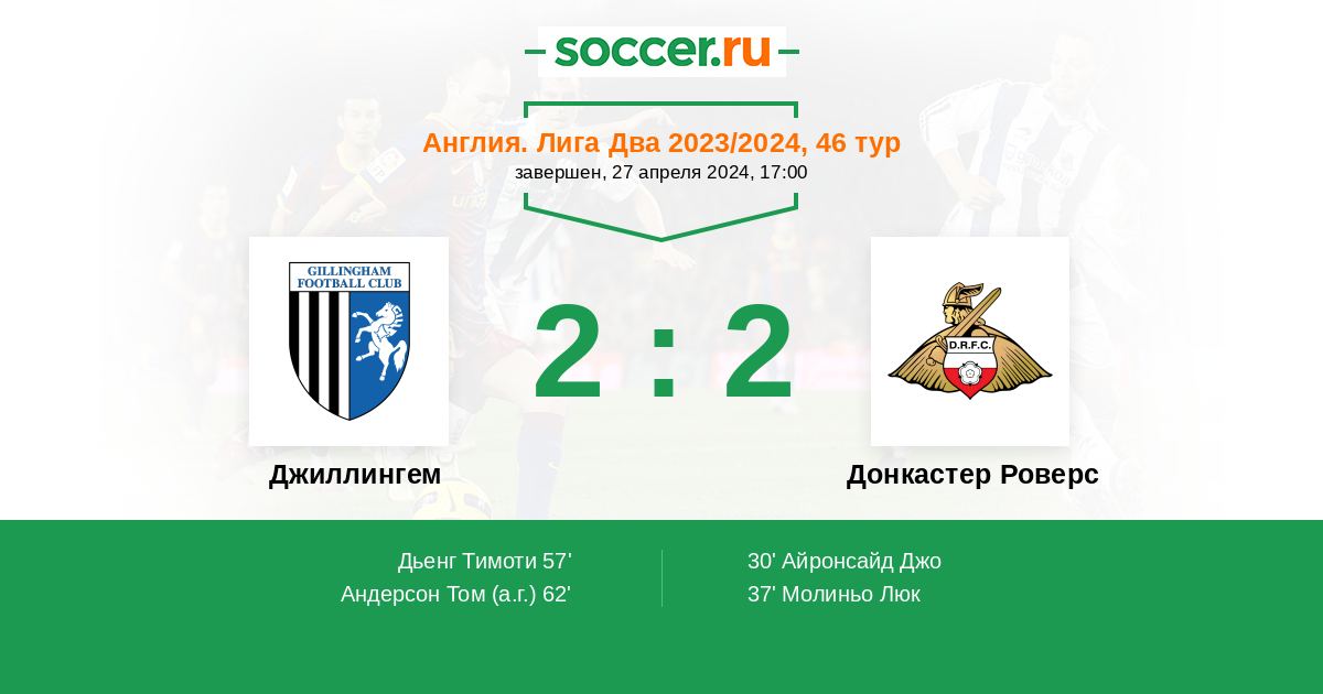 Протокол матча Джиллингем против Донкастер Роверс
