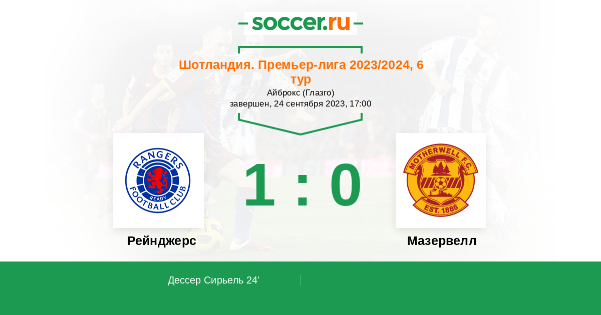 Протокол матча Рейнджерс против Мазервелл
