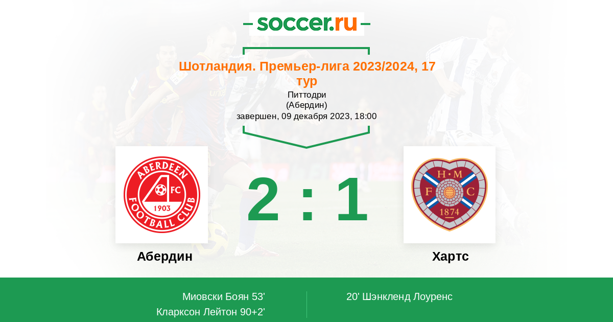 Протокол матча Абердин против Хартс