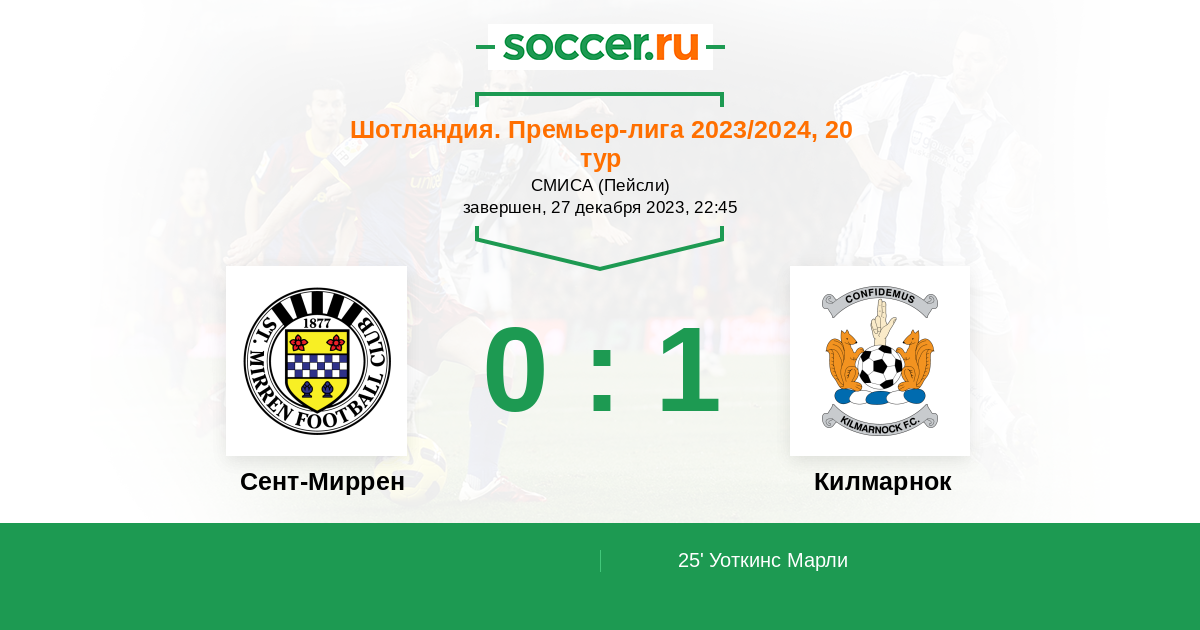 25' (0:1) Уоткинс Марли (23) (Кеннеди Мэттью (10))