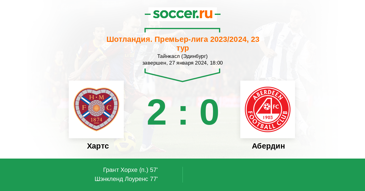 Протокол матча Хартс против Абердин