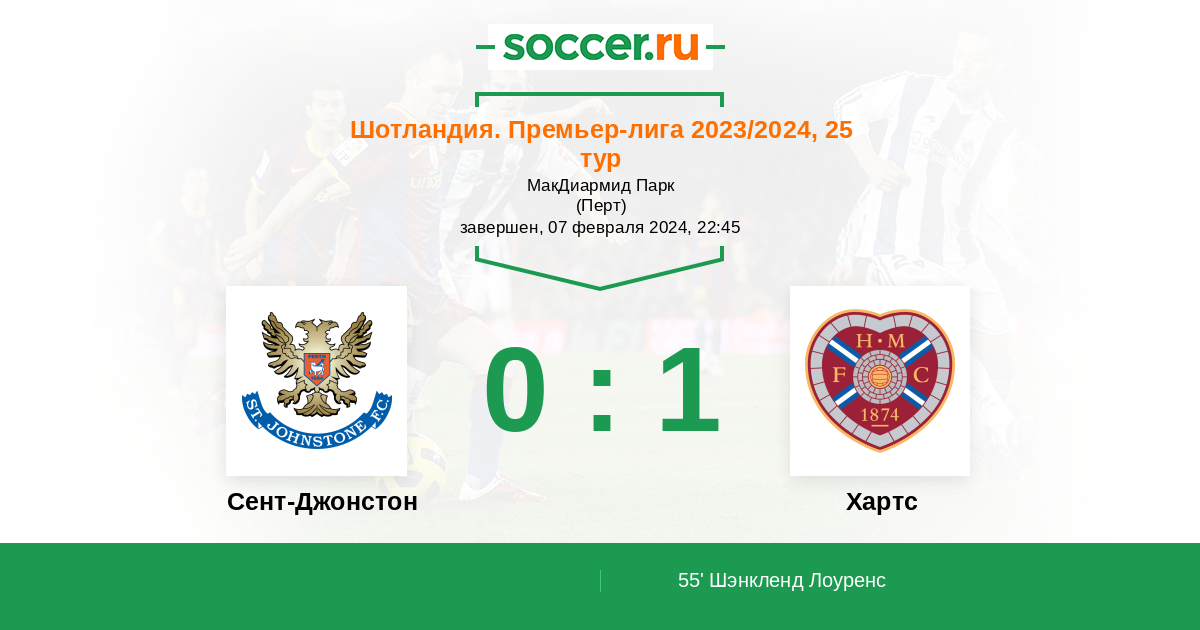 Протокол матча Сент-Джонстон против Хартс