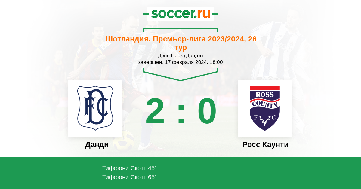 Протокол матча Данди против Росс Каунти