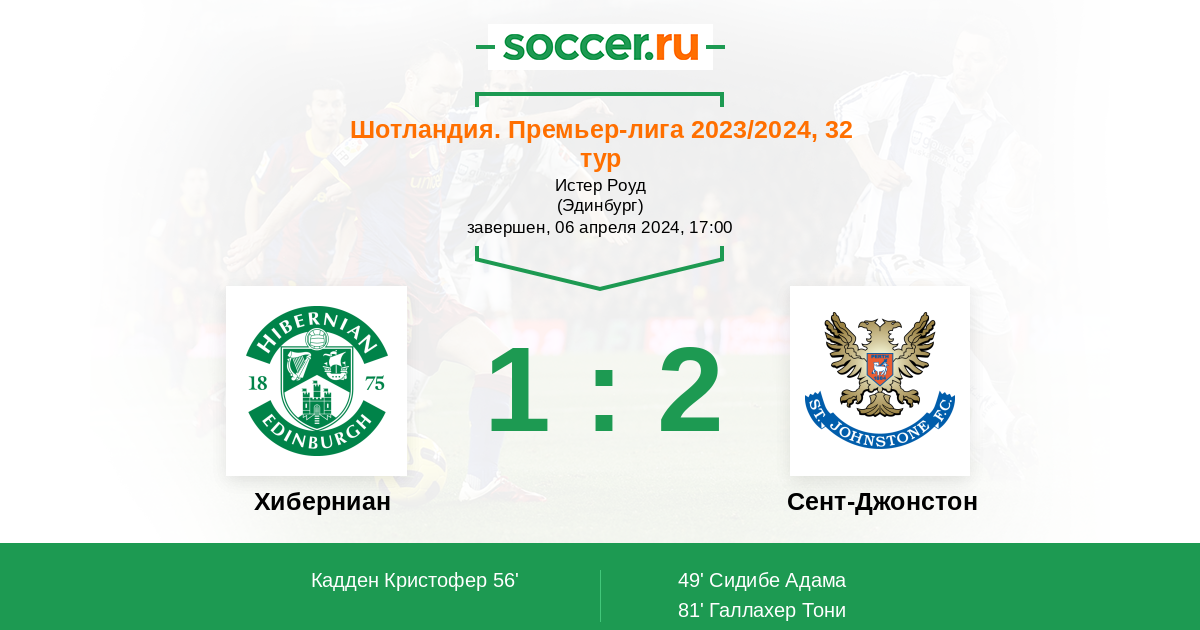 Протокол матча Хиберниан против Сент-Джонстон