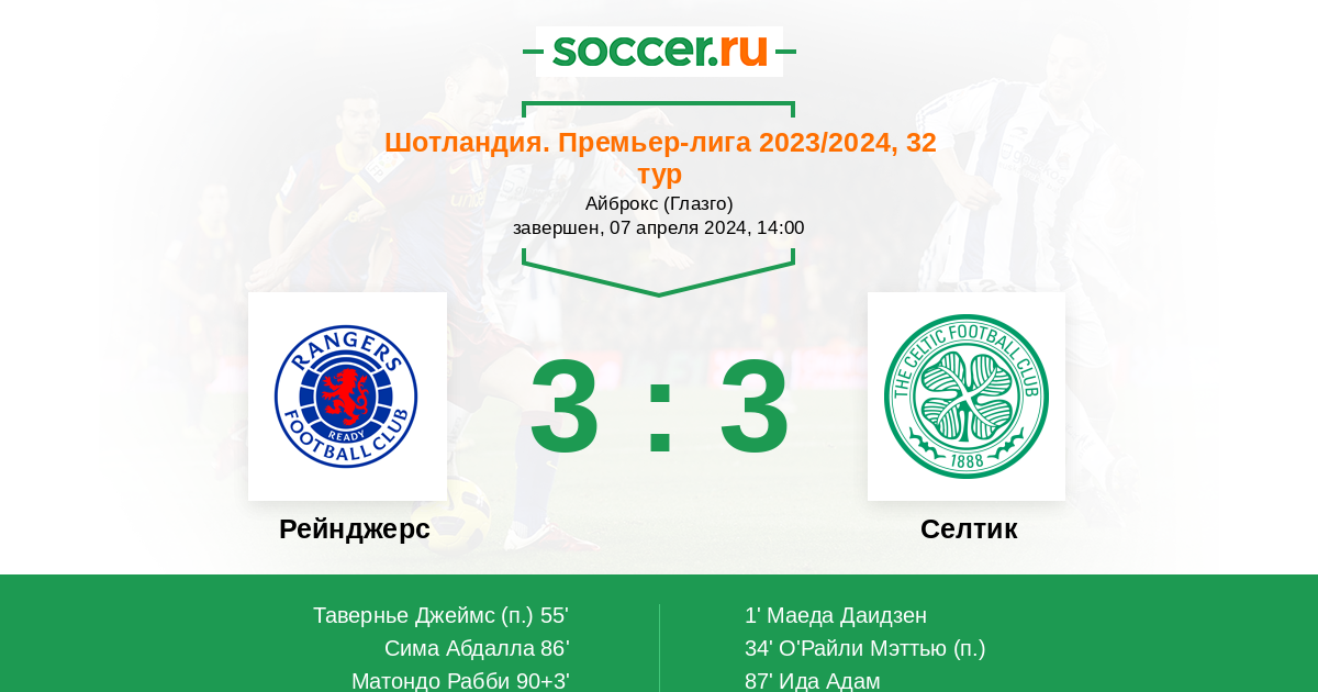 Протокол матча Рейнджерс против Селтик