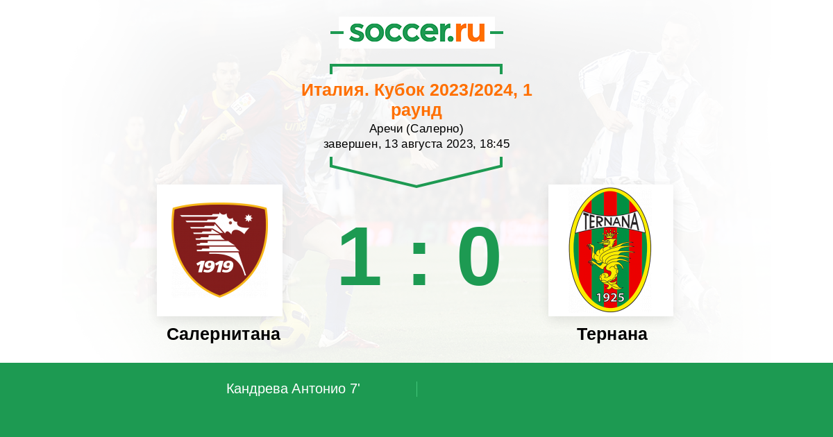 Протокол матча Салернитана против Тернана