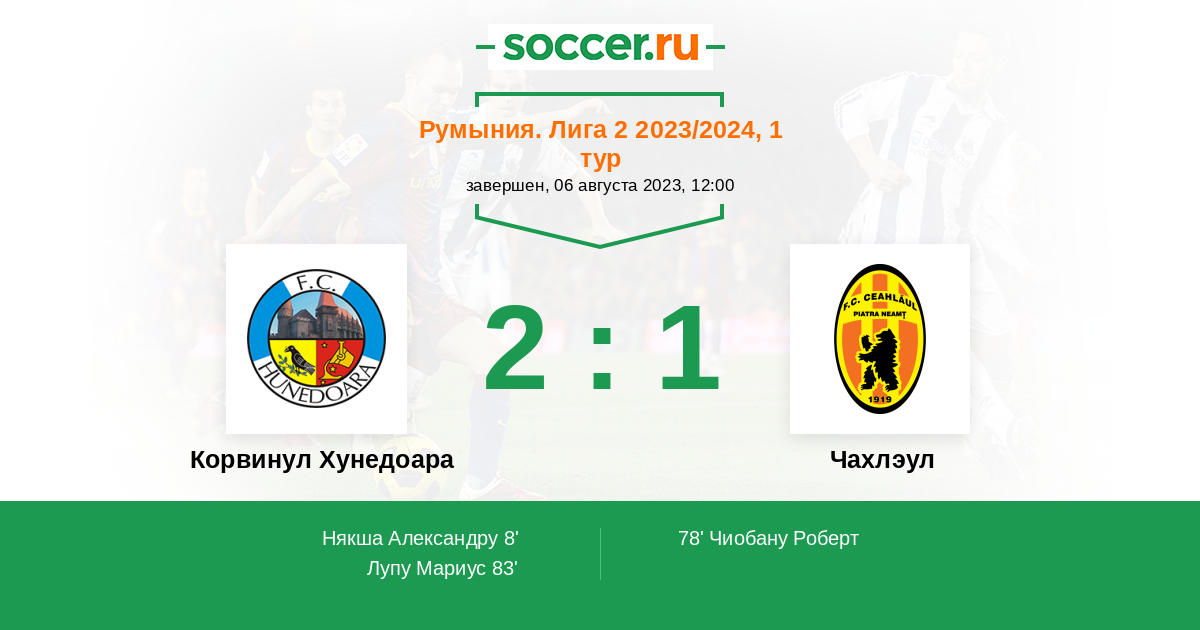 Протокол матча Корвинул Хунедоара против Чахлэул