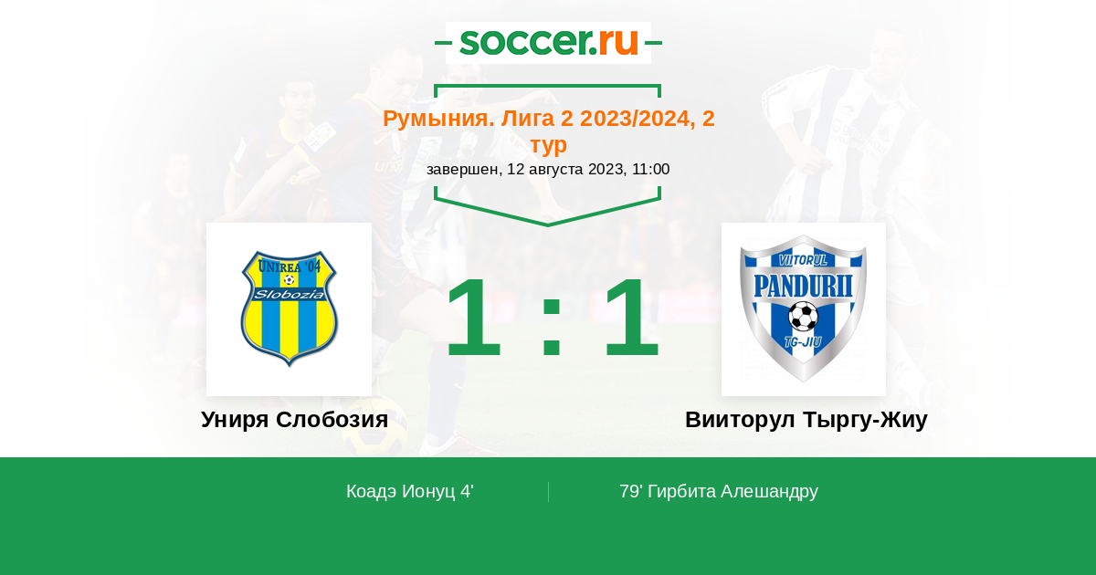Протокол матча Униря Слобозия против Вииторул Тыргу-Жиу