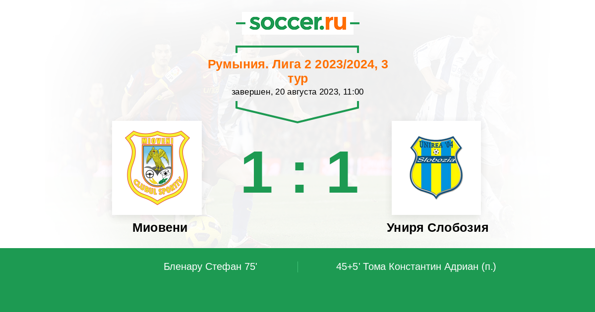 Протокол матча Миовени против Униря Слобозия