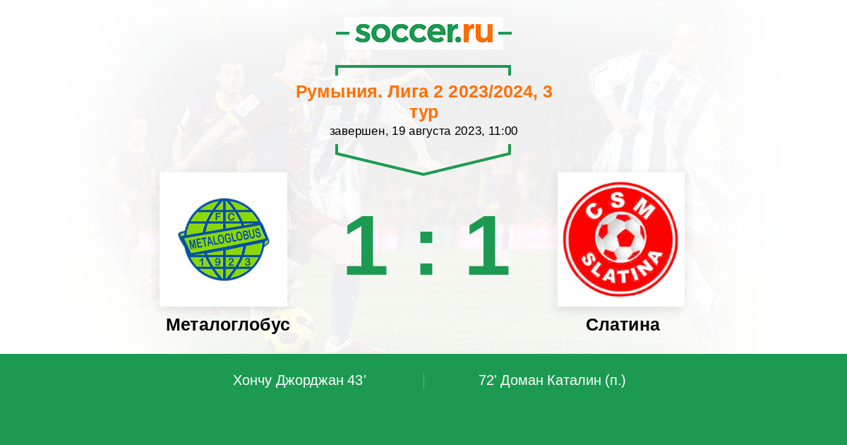 Протокол матча Металоглобус против Слатина
