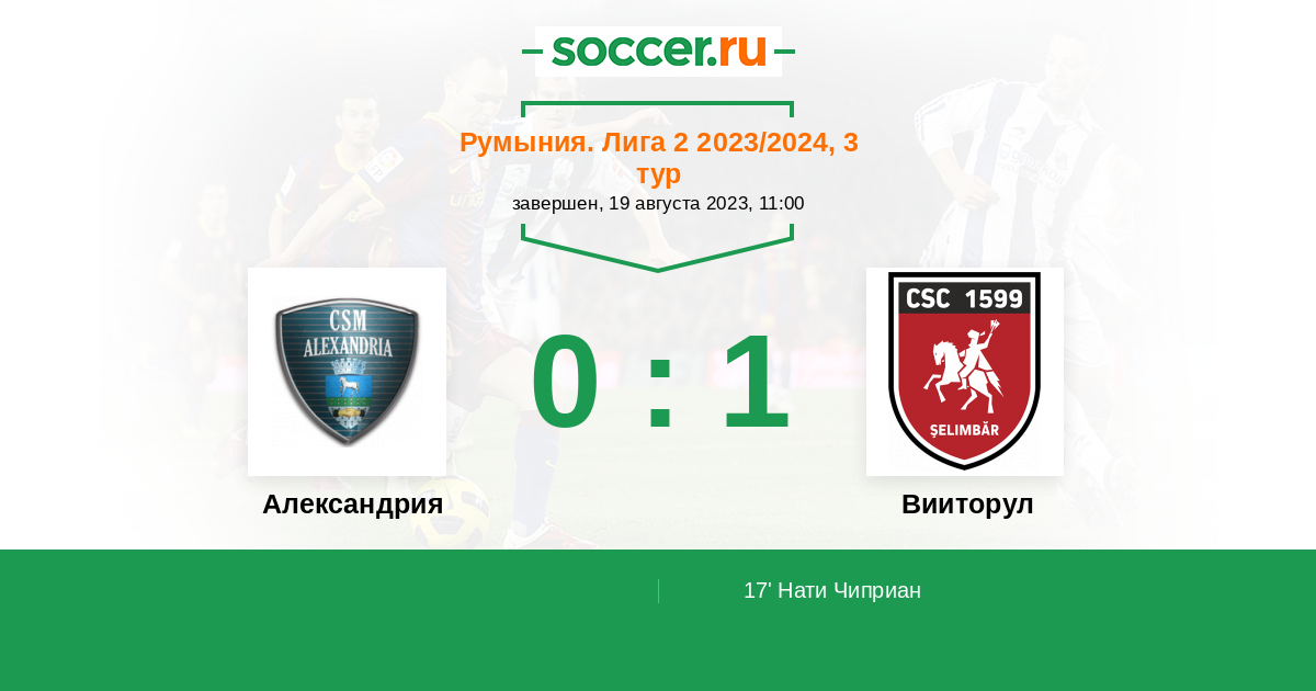 Протокол матча Александрия против Вииторул
